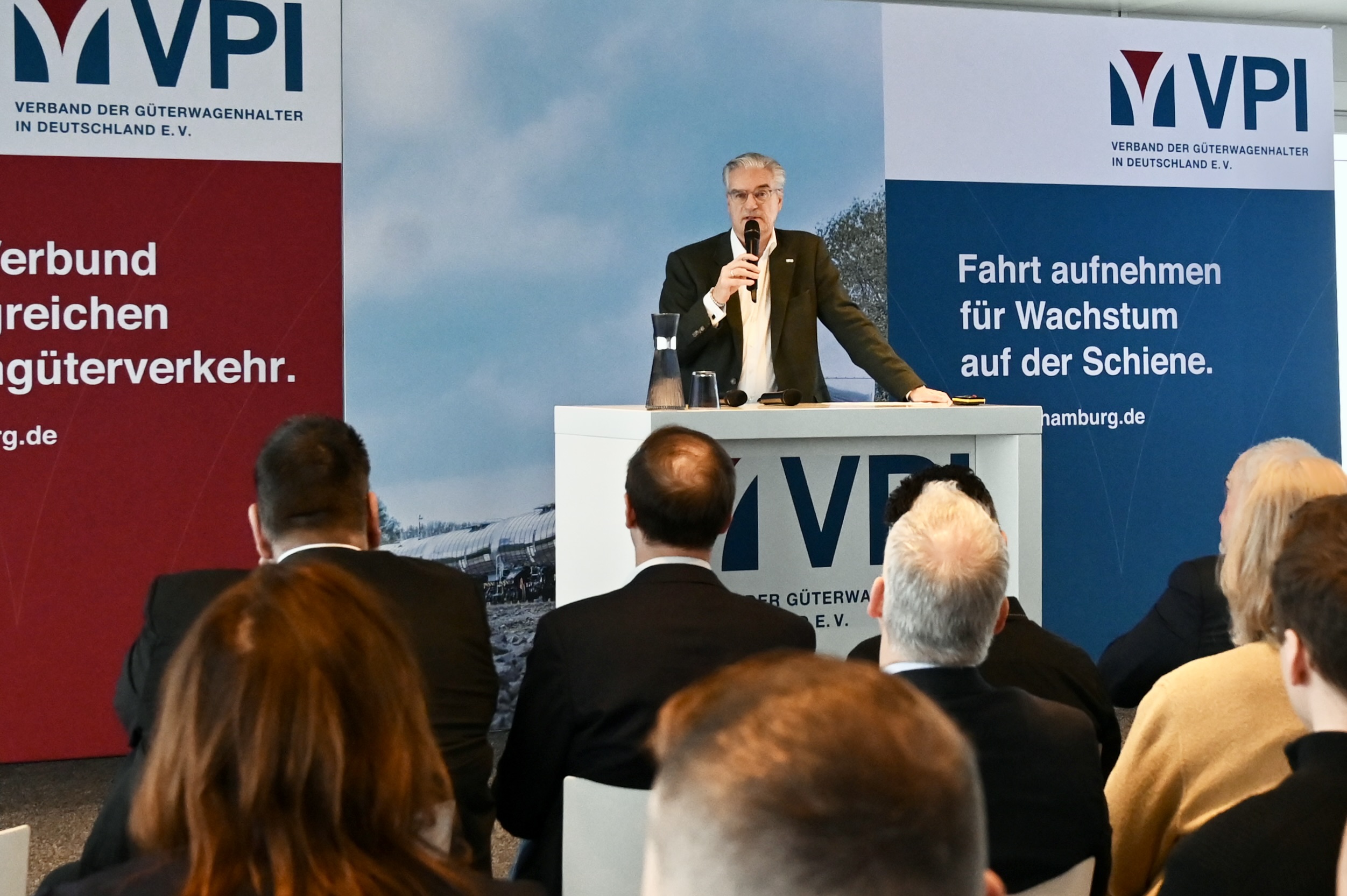 In seiner Eröffnungsrede ordnete der VPI-Vorsitzende Malte Lawrenz die aktuelle Lage des Sektors ein. „Der Schienengüterverkehr steht vor großen Herausforderungen – politisch, wirtschaftlich und im täglichen Betrieb“, sagte Lawrenz. Entscheidend sei jetzt, geschlossen zu handeln. „Als grenzüberschreitender Verkehrsträger müssen wir Lösungen immer im europäischen Kontext entwickeln. Das gilt für die Infrastruktur ebenso wie für Regularien. Gemeinsames Handeln ist Voraussetzung, um den Sektor nachhaltig zu stärken und seine Leistungsfähigkeit zu sichern.“